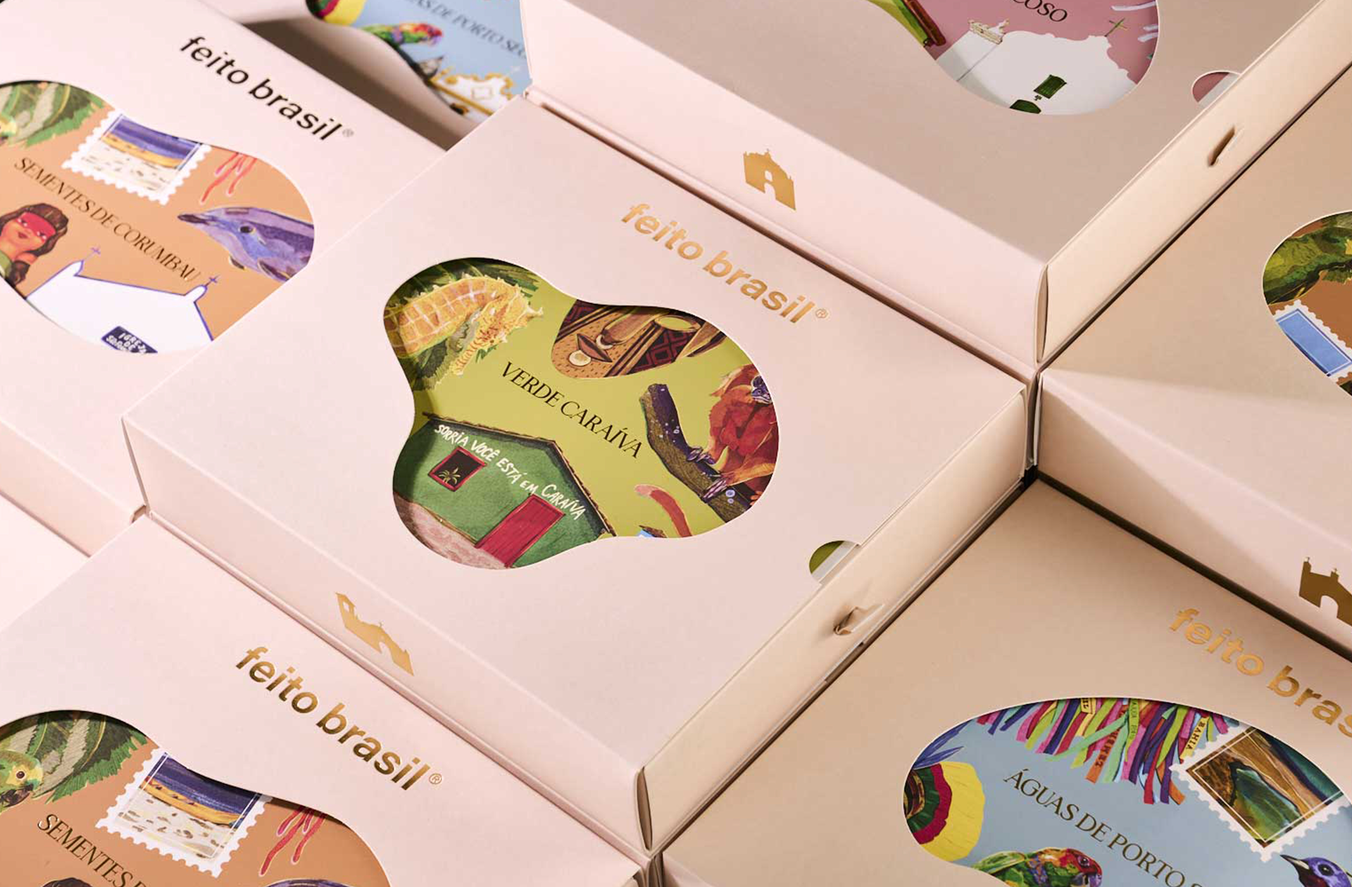 As embalagens da Coleção Exuberante Bahia são um convite a uma viagem sensorial pelos encantos do sul da Bahia. Inspiradas em Caraíva, Porto Seguro, Corumbau e Trancoso, unem estética, memória afetiva e ingredientes locais. Cada kit traz um cartão postal exclusivo e embalagens com ilustrações de elementos típicos de cada região, além de acabamentos sofisticados que celebram a cultura, a natureza e a sofisticação rústica dessa região tão vibrante do Brasil.