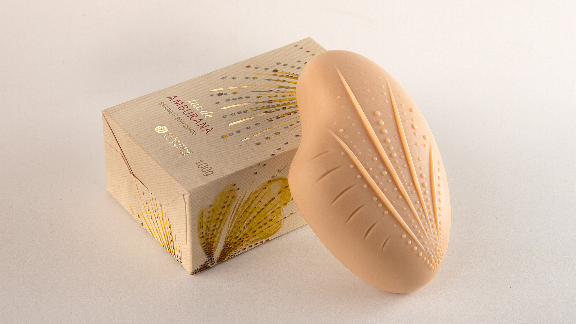 Para lançar o primeiro Eau de Parfum bifásico da marca, criamos um frasco exclusivo que transmite sofisticação e inovação, mantendo conexão com a linha Amburana. O shape vertical com ranhuras simboliza luz irradiada. Desenvolvemos também o molde do sabonete e a identidade visual, que une arte manual e acabamentos premium, reforçando o conceito de brilho interior que inspira confiança e autenticidade.