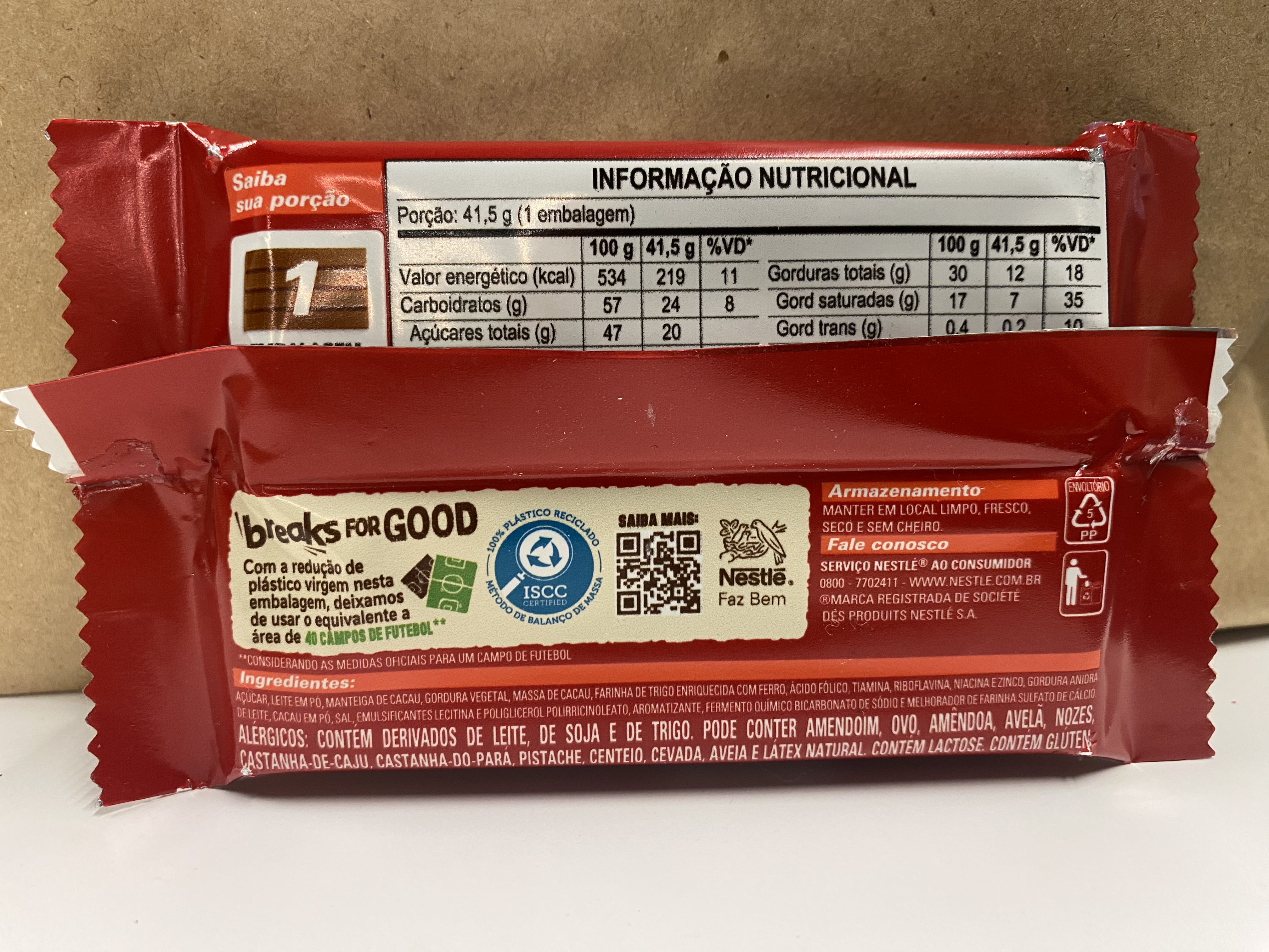 O uso de plástico PCR no Brasil tem potencial de escala, alavancado pela conscientização de sustentabilidade e demanda por produtos reciclados, porém desafios de infraestrutura, viabilidade financeira e qualidade persistem. O plástico PCR reduz resíduos, pegada de carbono e promove economia circular A embalagem de Kitkat já está pronta para ser reciclada e essa edição ainda conta com plástico 100% reciclado de outros processos. O descarte ideal é na coleta seletiva comum, junto com outros resíduos recicláveis para que tenha o destino correto e garanta a circularidade dos recursos utilizados.