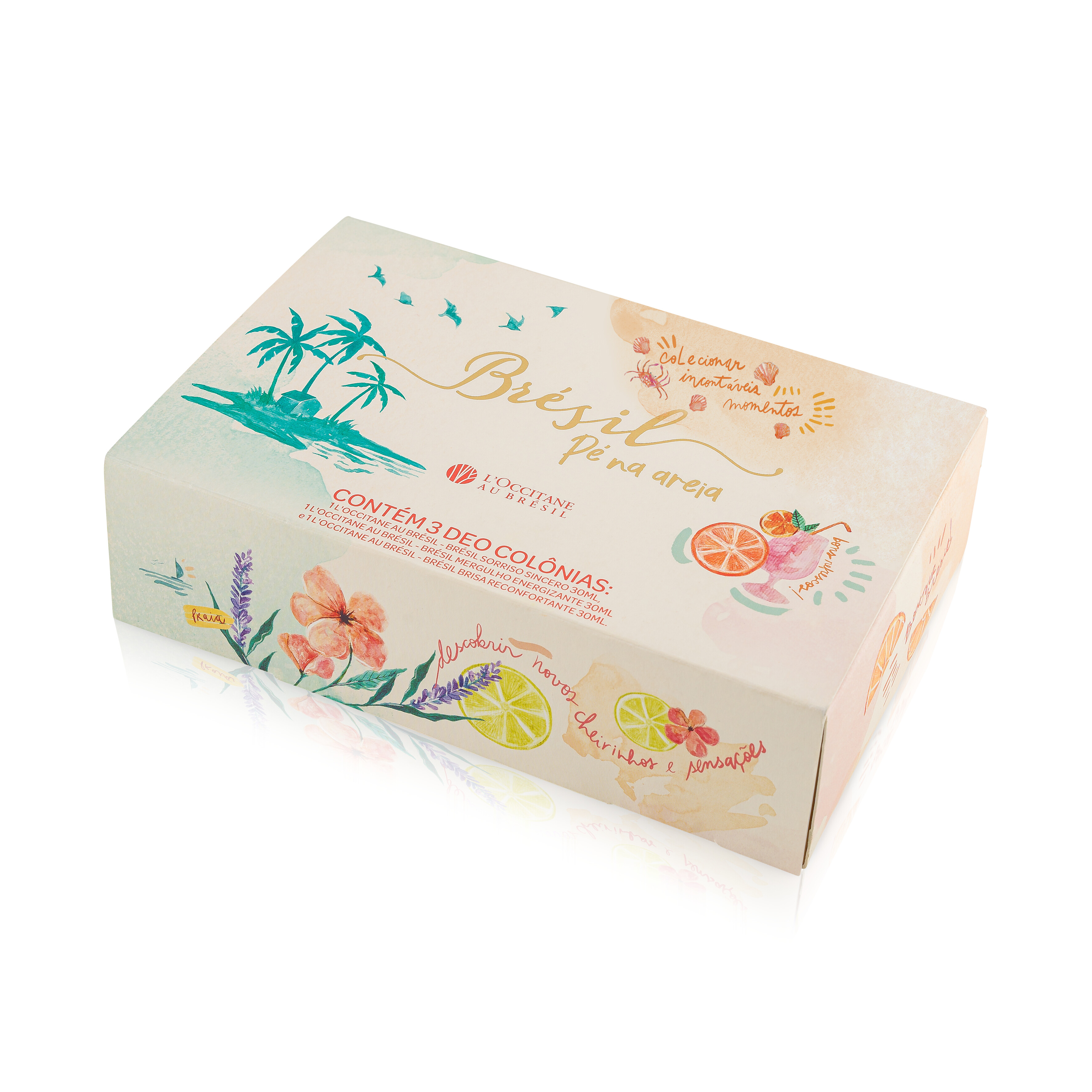 Brésil Pé na Areia é um kit presenteável de edição limitada, com três fragrâncias unissex inspiradas em praias brasileiras e formuladas com a tecnologia MoodScentz®. O projeto nasceu da união entre a sofisticação francesa e o carisma brasileiro, traduzindo o “borogodó” do Brasil. Com frascos colecionáveis e apelo sensorial, foi um dos TOP 10 de vendas no canal direto da marca no Natal de 2024.