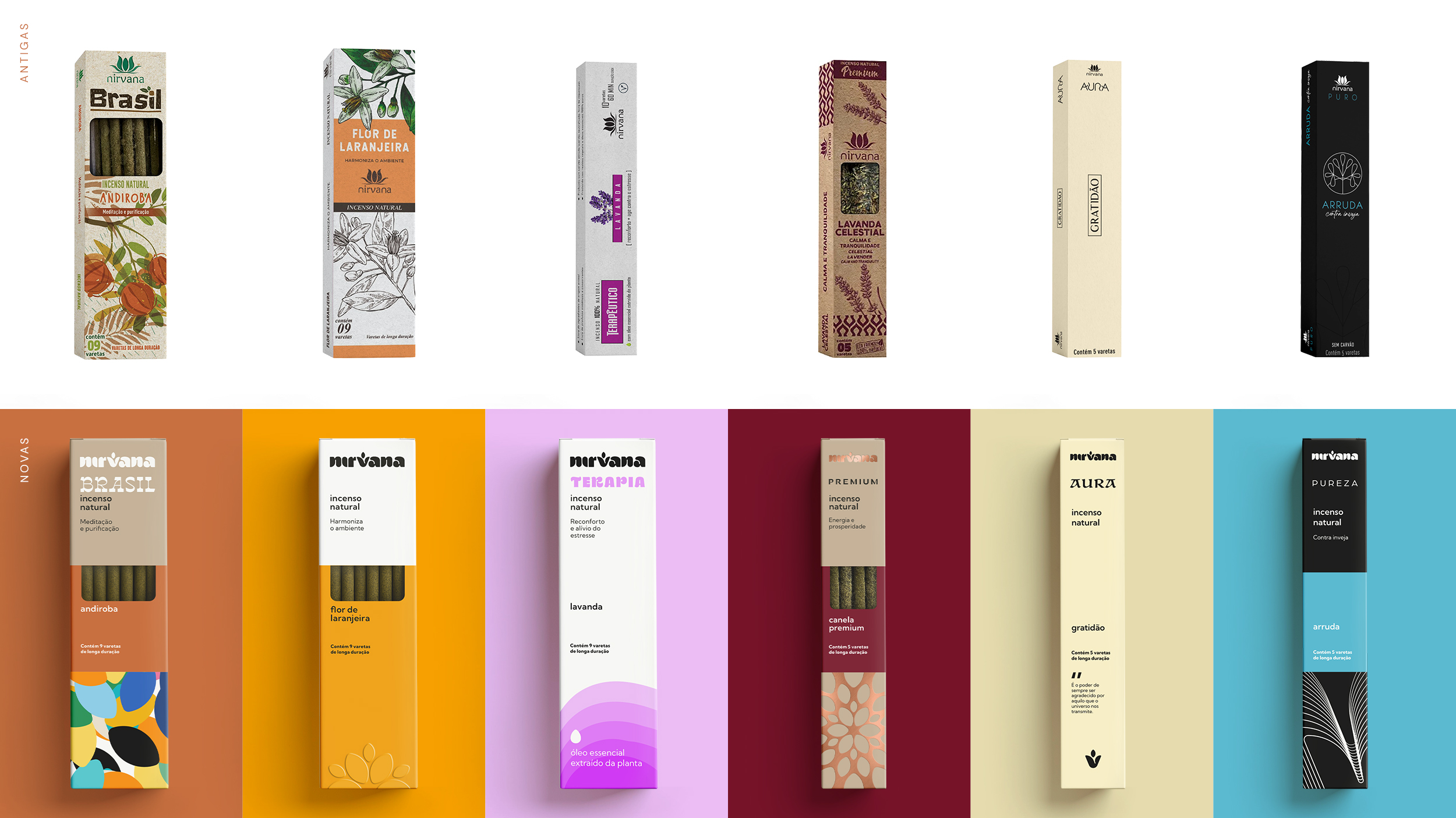 A Nirvana é uma marca de incensos naturais que buscava ampliar seu alcance para além do público esotérico. O projeto de reposicionamento incluiu a criação de uma nova linguagem visual e linha de embalagens que rompessem com os códigos tradicionais do segmento. A solução equilibra ancestralidade e contemporaneidade, conecta canais B2B e B2C e impulsiona o desejo de experimentação, com identidade visual forte, categorização clara e destaque no ponto de venda.