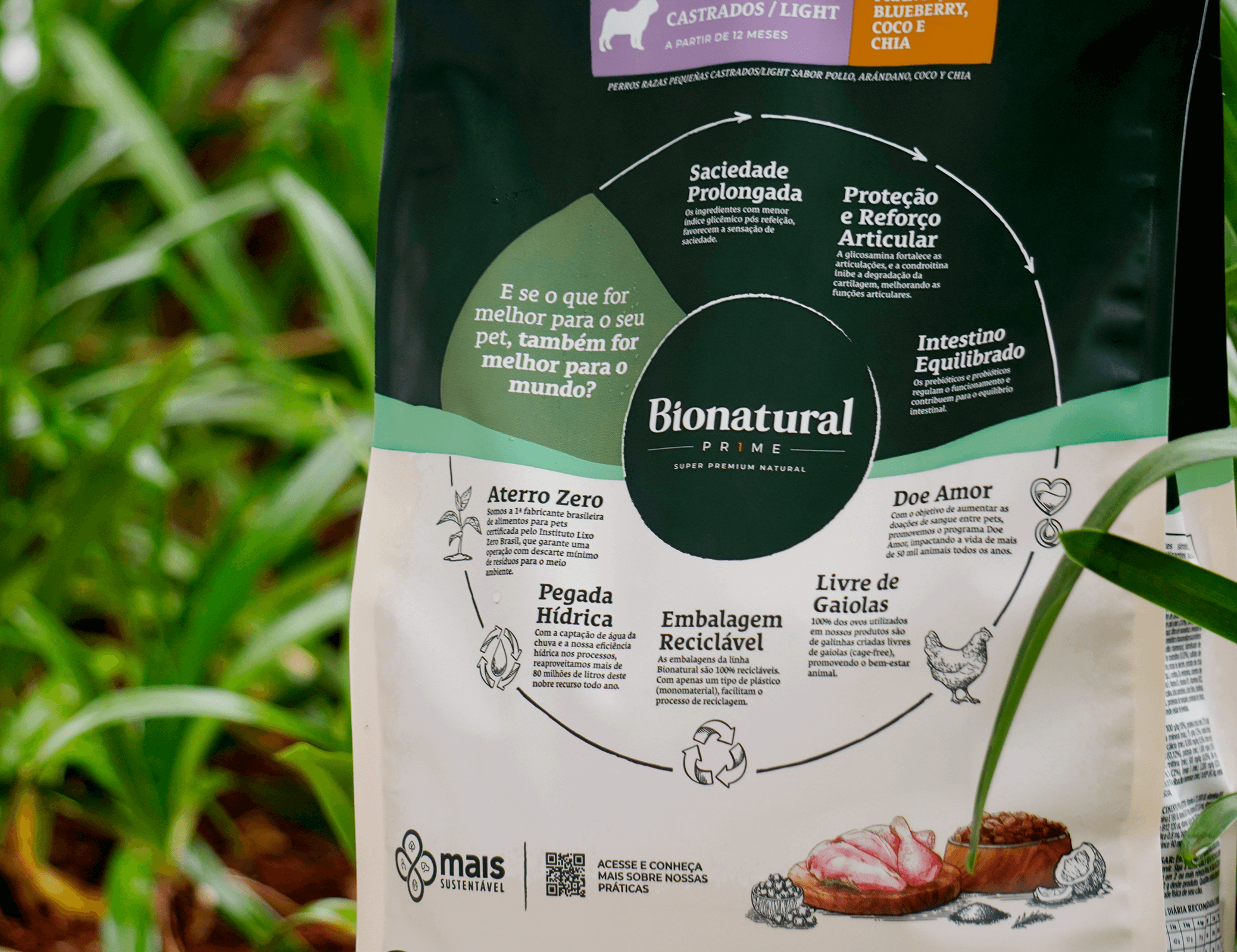 A Bionatural materializou a sustentabilidade da empresa, seja nas embalagens 100% recicláveis com estrutura monomaterial que facilita a reciclagem após consumo, até a comunicação de importantes práticas ESGs que vem sendo desenvolvida ao longo de mais de 10 anos pela empresa.