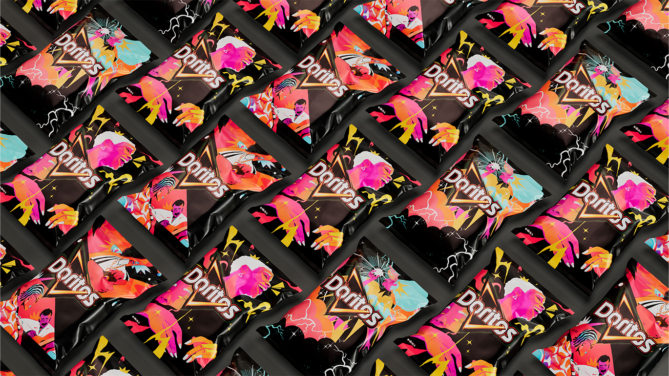 Collab Doritos® Feira Preta. A Collab com a Feira Preta, o maior evento de Cultura Negra da América Latina, em São Paulo. Quatro artistas foram selecionados para ilustrar um Doritos® e a experiência do evento. A ideia era criar um cód. visual para o Festival Feira Preta com três artistas que também são membros da Preta Comics, uma iniciativa do Instituto Feira Preta que promove artistas negros locais. As ilustrações são inspiradas em elementos da história negra brasileira.