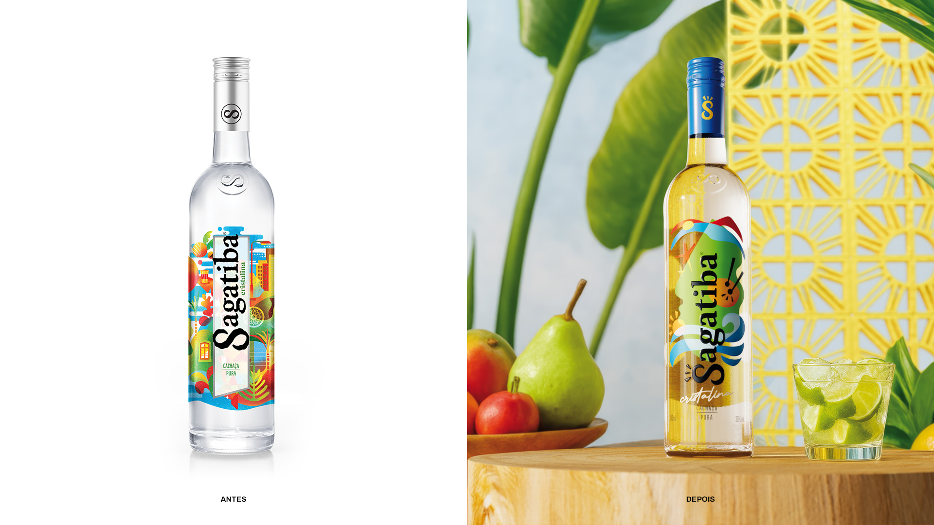 A renovação do design de Sagatiba abarcou a atualização completa da identidade visual, incluindo o redesenho do rótulo da garrafa Cristalina, a primeira variedade relançada dentro da nova identidade. A nova embalagem foi concebida para expressar visualmente a ´Pura Brasilidade´, trazendo as cores vibrantes e os símbolos que evocam a diversidade cultural do Brasil. O logo também foi atualizado com um refinamento que reforça sua posição como uma cachaça premium e diferenciada.
