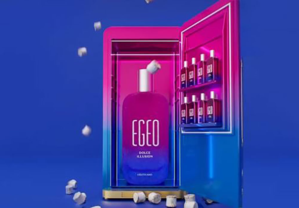 A ativação utilizou a geladeira como metáfora do conceito olfativo de Egeo Dolce Illusion, um perfume gourmand que explora contrastes e propõe novas percepções dentro da família adocicada. A ideia é associar o “lado gelado” da fragrância ao contexto do verão, ampliando o repertório de uso e rompendo com abordagens convencionais de apresentação de perfumes.